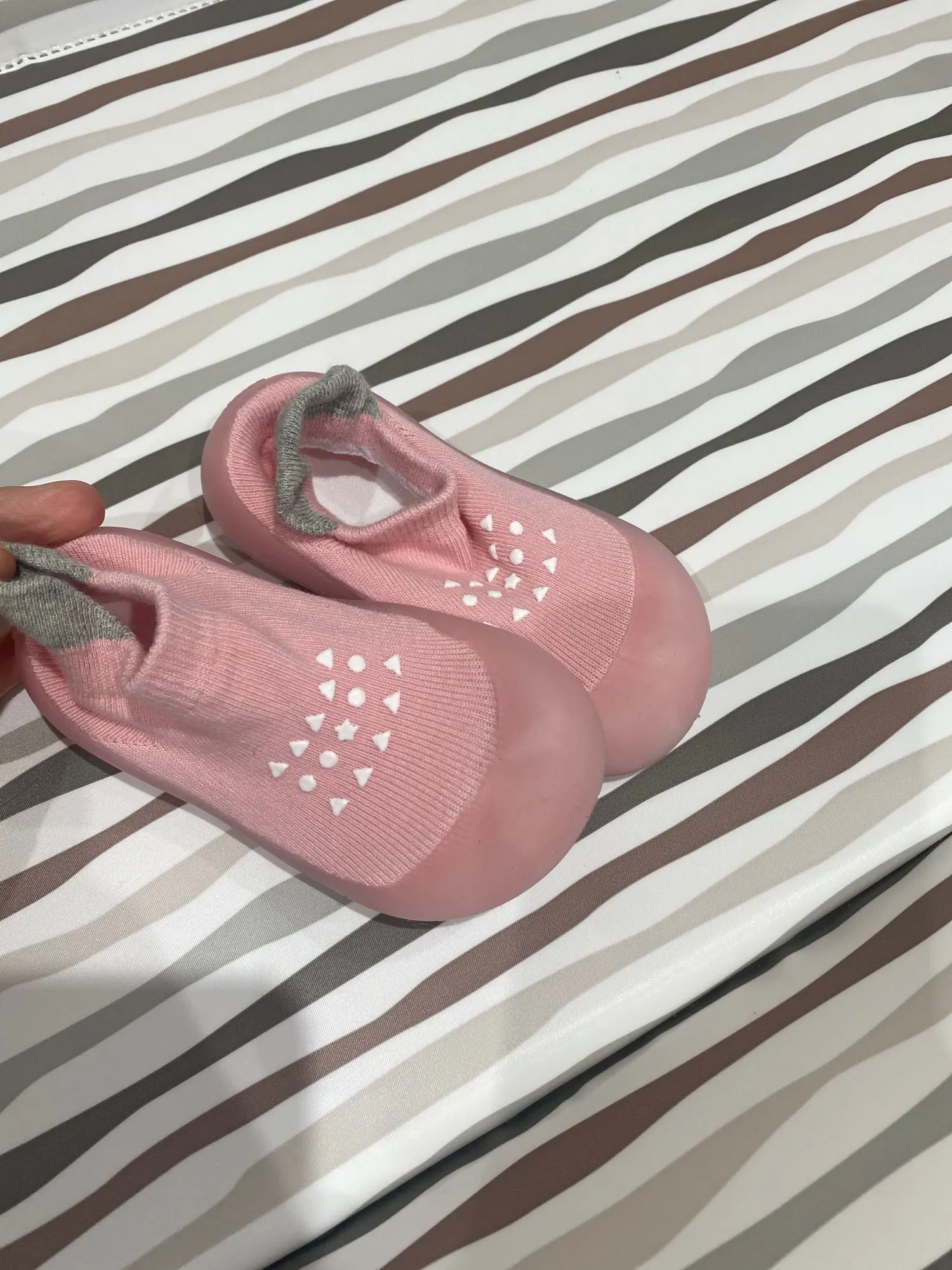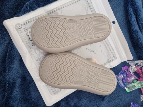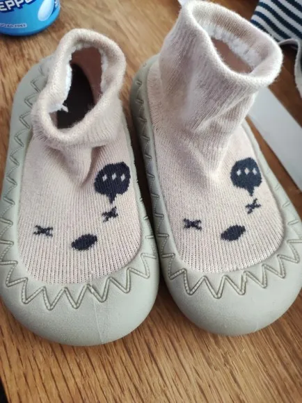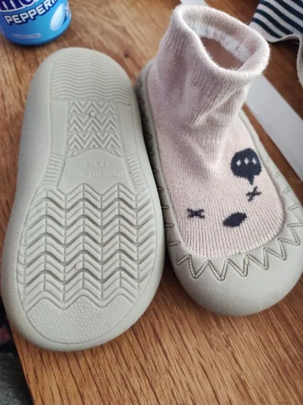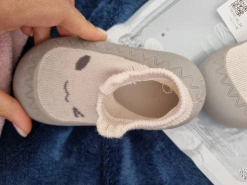 The Slipper looks really good quality, but for the size it says is I measure my baby's little foot and it is quite large so you can ask for a smaller size. The sock that doesn't seem to have much elasticity. But it is super practical to put on and rest. I recommend