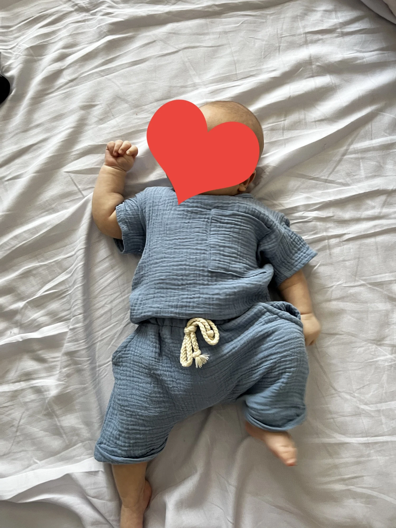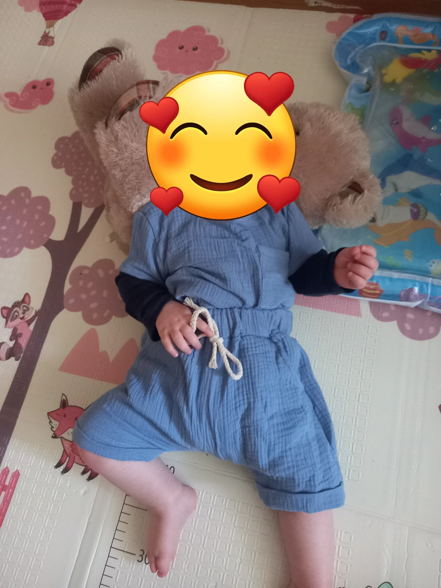 Great suit, in the heat it's for the baby. I took a size of 3-6, and so far we are only 2 months old, already in terms of the size of the norms, after washing we sat down a little, but this is a feature of the muslin fabric. The elastic band on the shorts is really tight, so it is better to take a size larger. Will still sit down a little after washing
